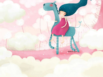 She was looking at a picture of a girl-angel with a black cat, sitting on some kind of a floating trail of lil flowers. She didn't notice the white cat then ... only now.